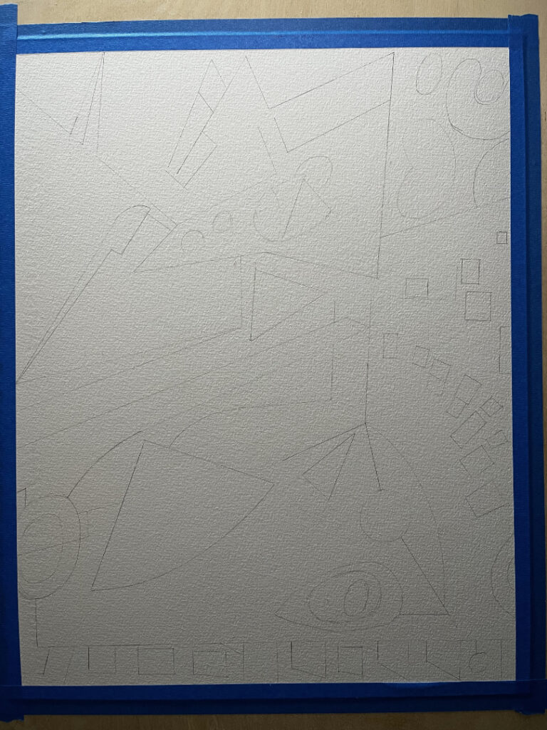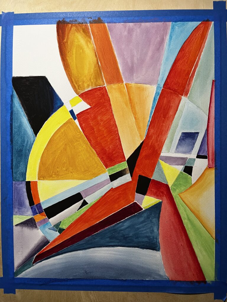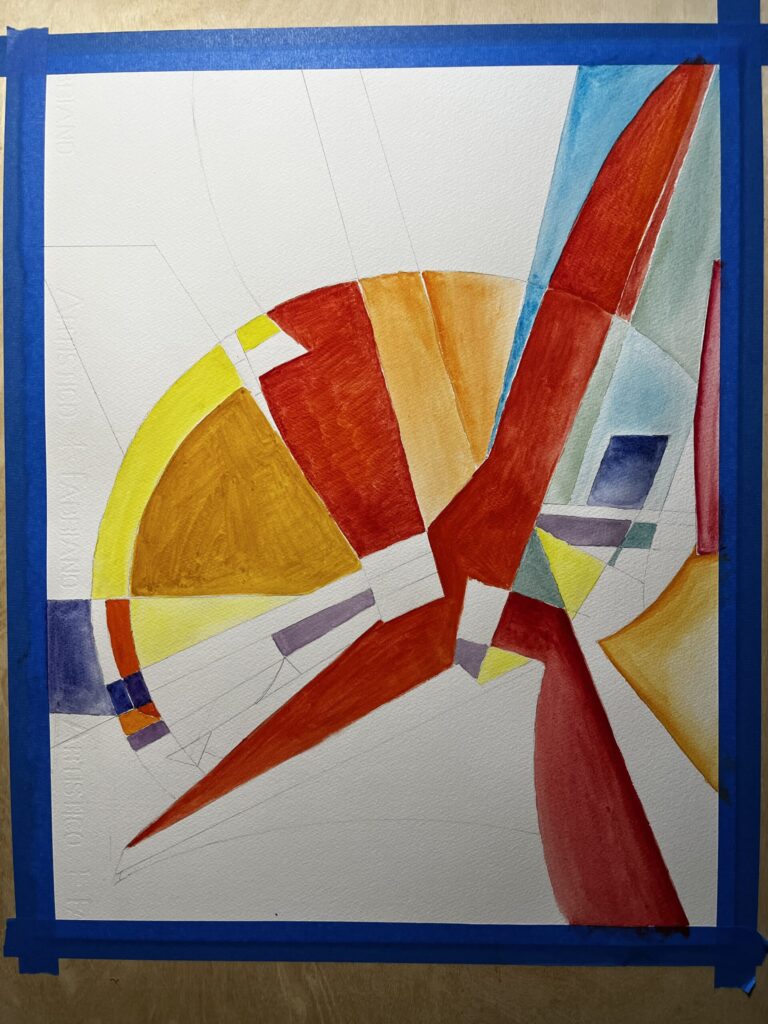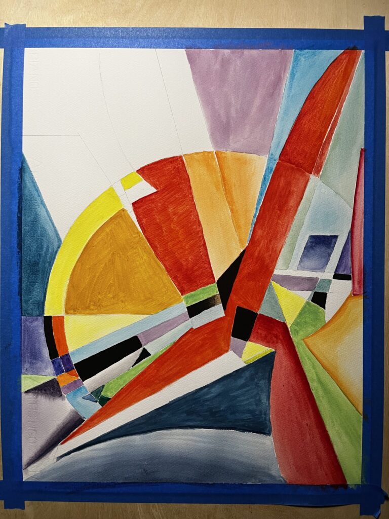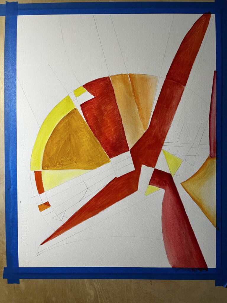well, I didn’t take too many in-progress photos of sequence 15. After working at this painting size for 3 paintings in a week or so, I definitely want to go back and re-select the 5th reference for the final painting at this size (16″x20″). I had picked out ruler-heavy, mostly straight and angular shaped references, and I think I have enough paintings of that for now, and want to work on more curved shapes. I’ve picked one that I think will be good at this size for that painting, so… i’ll get started on that tonight and try to paint some tomorrow, and likely will wrap it up on sunday night.